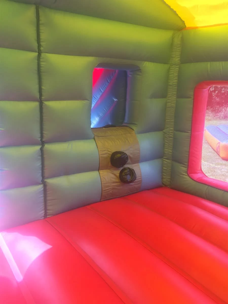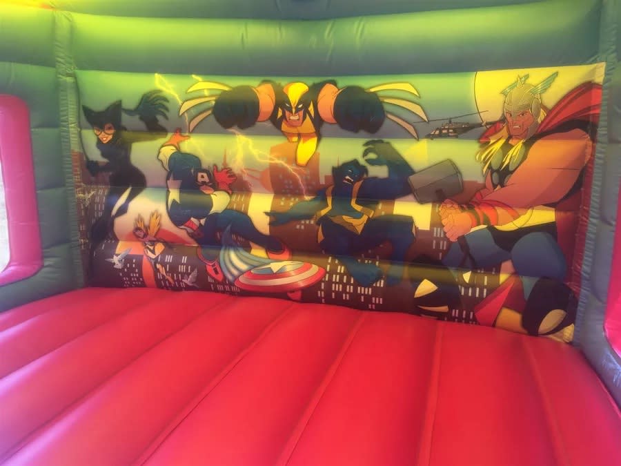 This Castle has been beautifully designed with all your favourite Superheroes characters. This inflatable has 2 large side windows, ideal for viewing the children and air circulation. Inside the castle there is a large bounce area and padded foam steps to climb to the top of the slide.