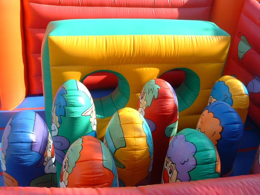 The Clown Multiplay is an open air bouncy castle. This unit is fitted with climb through obstacles and a section of 9, 3ft biff and bashes, painted as cartoon clowns. The castle is 17ft wide & 17ft in length and is good for children up to the ages of 12 years. This castle doesn't come with a shower cover, but is supplied with safety mats at the front.