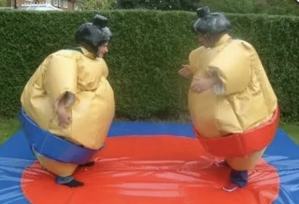 - A pair of Adult Sumo Suits with mat