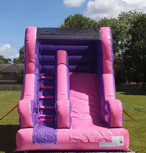 This vibrantly coloured, Pink & Purple slide would really shine at any school fete, inflatable fun day or party.