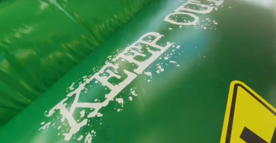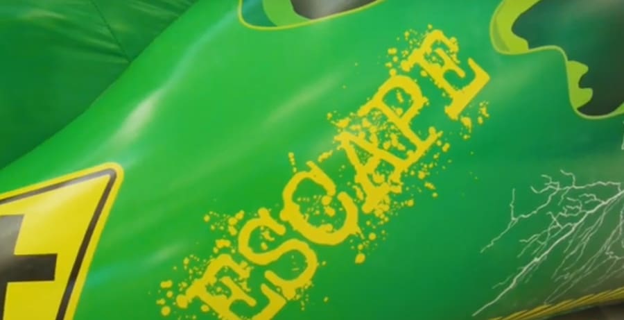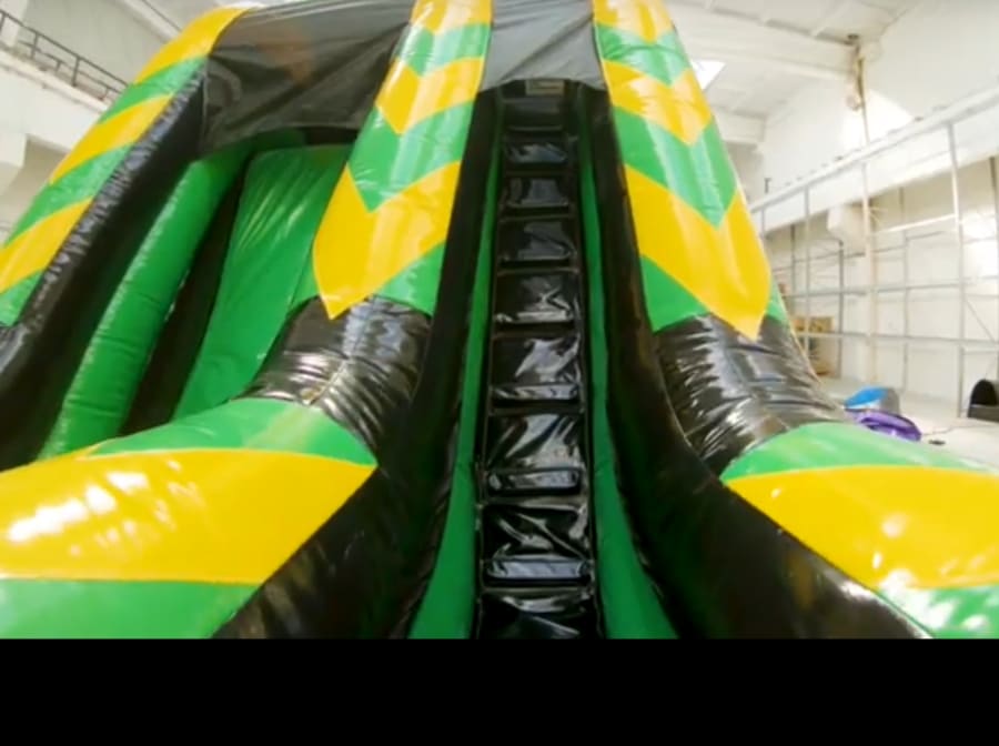The Toxic “Rush” Slide measures 13.5ft wide, 21ft long and 20ft high with a 10ft drop slide platform