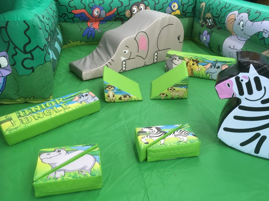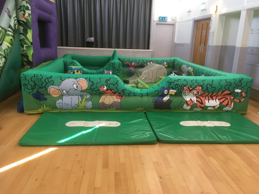 A fantastic package here with a discounted price for 2 great matching products, this will definitely keep the little ones entertained. There is a Jungle themed Bounce and Slide castle along with the Jungle Padded Play Box, Inside the play box there are 18 pieces of jungle themed soft play that include a Zebra Rocker and Elephant. The the play box is decorated with jungle themed artwork and has a 4.5 x 4.5ft ball pond area