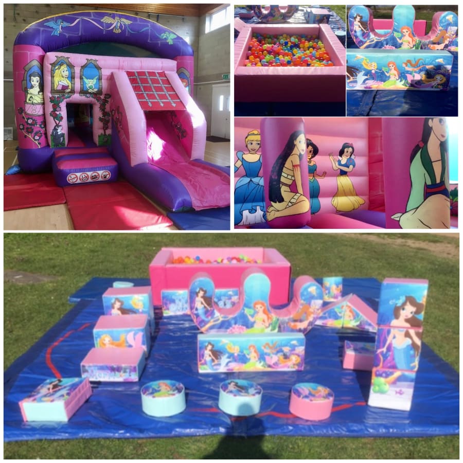 PRINCESS AND MERMAIDS BOUNCY CASTLE WITH SLIDE AND 19 PIECE SOFT PLAY AND BALL POND PARTY PACKAGE HIRE IN BEXLEYHEATH, WELLING, CRAYFORD, ERITH, SIDCUP, BEXLEY, SWANLEY, GREENHITHE, DARTFORD, HAWLEY, HORTON KIRBY, HIGHAM, CLIFFE, CLIFFE WOODS, ETC
